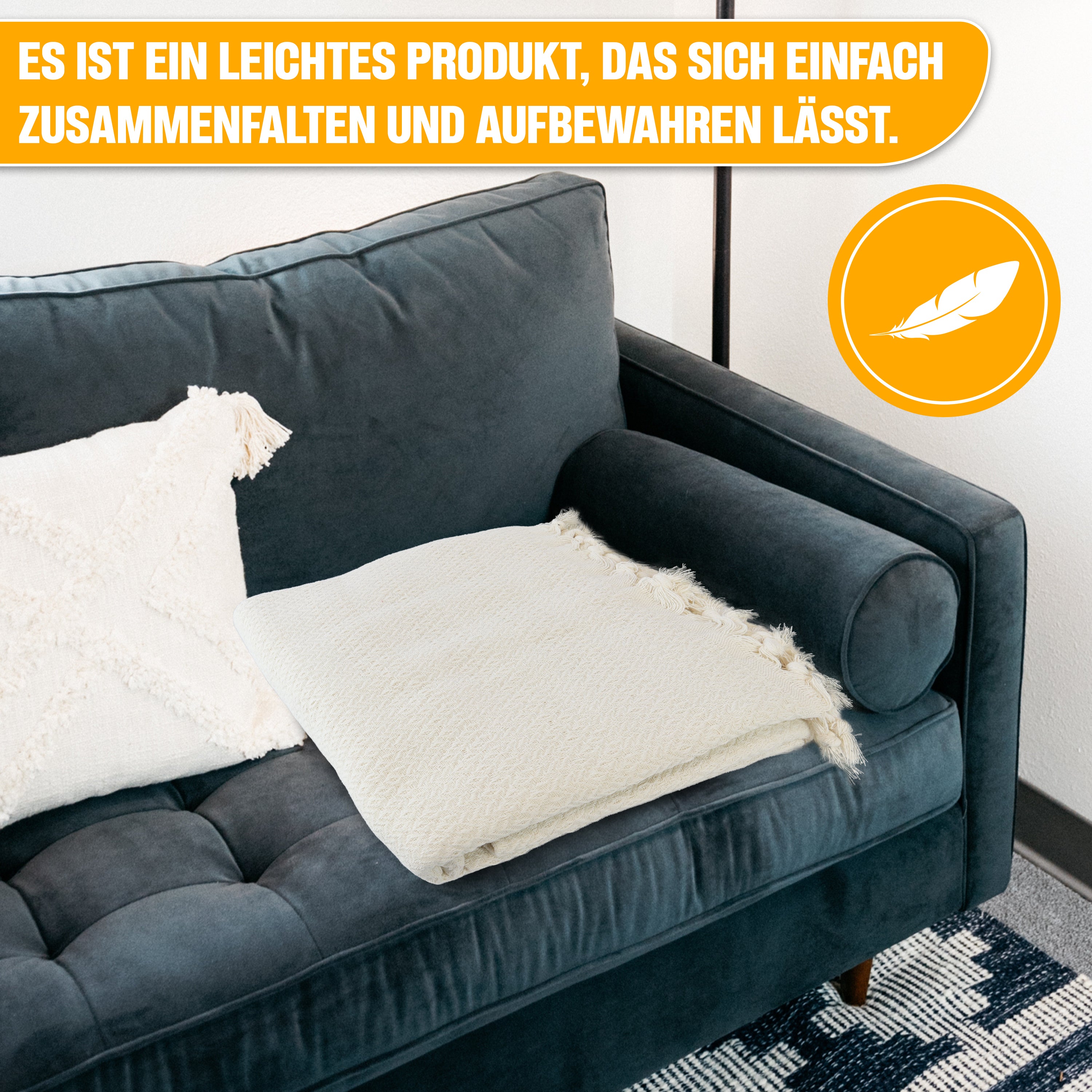 Hochwertige Tagesdecke Aus 100% Pure Baumwolle fühlt sich besonders weich an. Grosszügige Abmessungen Von 200x220 Cm. Kuschelig, gross und edel.